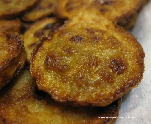 I like my very well done. I also like to cut some of the slices very thin and make almost a crisp out of them while I like to keep others thicker to have the sweet, creamy squash flavor. It is a personal preference as to how brown, how thick, and how salty you make them.