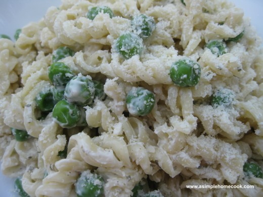 This main dish of peas and pasta was paired with fresh fruit to complete dinner in under 10 minutes cooking time. Plus, the inexpensive meal was enough to feed two people multiple meals. I also think it tasted better than what I could have picked up at a fast food restaurant 🙂